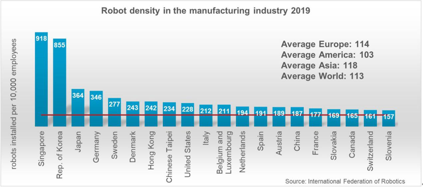 (2019年按国家划分的制造业中机器人密度图)
