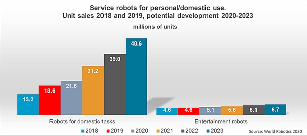 国际机器人联合会主席MiltonGuerry 表示:“我们预计,未来专业服务机器人和个人服务机器人的销量将继续保持强劲增长”。